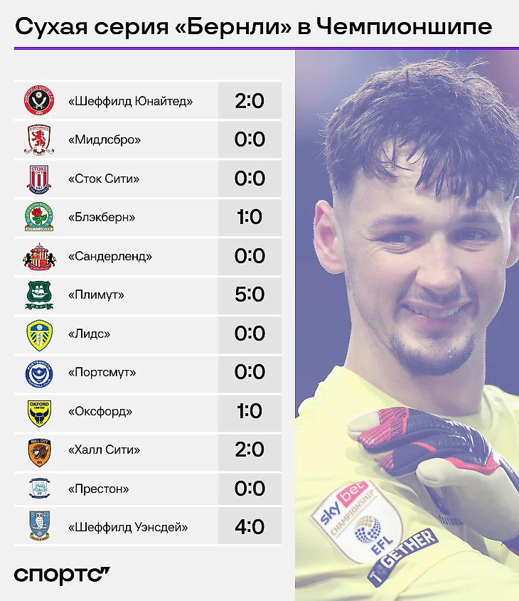 В последний раз «Бернли» пропускал в лиге 21 декабря: тогда обыграли «Уотфорд» (2:1), пропустив на 80-й минуте от Квадво Баа. С тех пор сухая серия тянется от «Шеффилд Юнайтед» (26 декабря, 2:0) до «Шеффилд Уэнсдей» (22 февраля, 4:0).