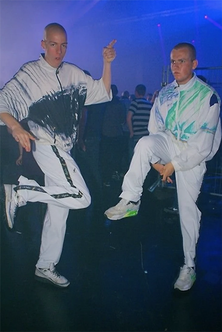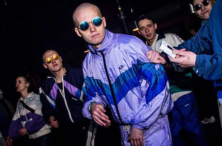 Он был таким же простым, как и музыка, которую они слушали. Габберы носили кроссовки Nike Air Max 90 с толстой подошвой, в которых было удобно отплясывать всю ночь. Типичный облик – спортивный костюм с олимпийкой на голое тело. Особенно котировались цветастые итальянской фирмы Australian L’Alpina, хотя Fila, Moschino и Cavello тоже сошли бы. Самая распространенная прическа – под ноль.