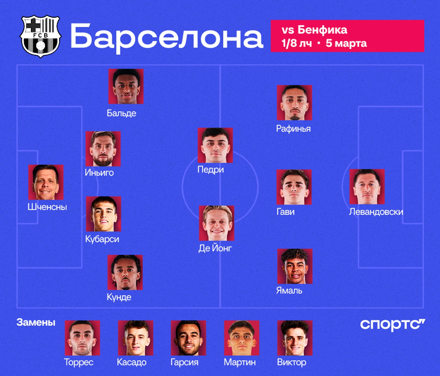 Возможный стартовый состав «Барселоны» на матч против «Бенфики»
