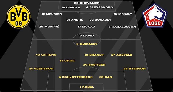 Главный тренер гостей Брюно Женезьо выставил на матч достаточно боевой состав: Люка Шевалье, Исмаили, Александру, Бафоде Диаките, Томас Менье, Айюб Буадди, Бенжамен Андре, Нгалайель Мукау, Итан Мбаппе, Хакон Харальдссон и Жонатан Давид. При этом, базовая расстановка у «Лилля» была 4-2-3-1 или 4-3-3, которая при переходе на чужую половину поля периодически трансформировалась в 3-2-4-1, в которой Менье смещался в середину поля, а Буадди с места опорного полузащитника выдвигался вперед ближе к линии атаки. Но в обороне против Гиттенса постоянно играли Менье и Мбаппе.