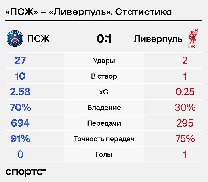 «Ливерпуль» обыграл «ПСЖ» 1-м ударом в створ. На 87-й минуте 🤯