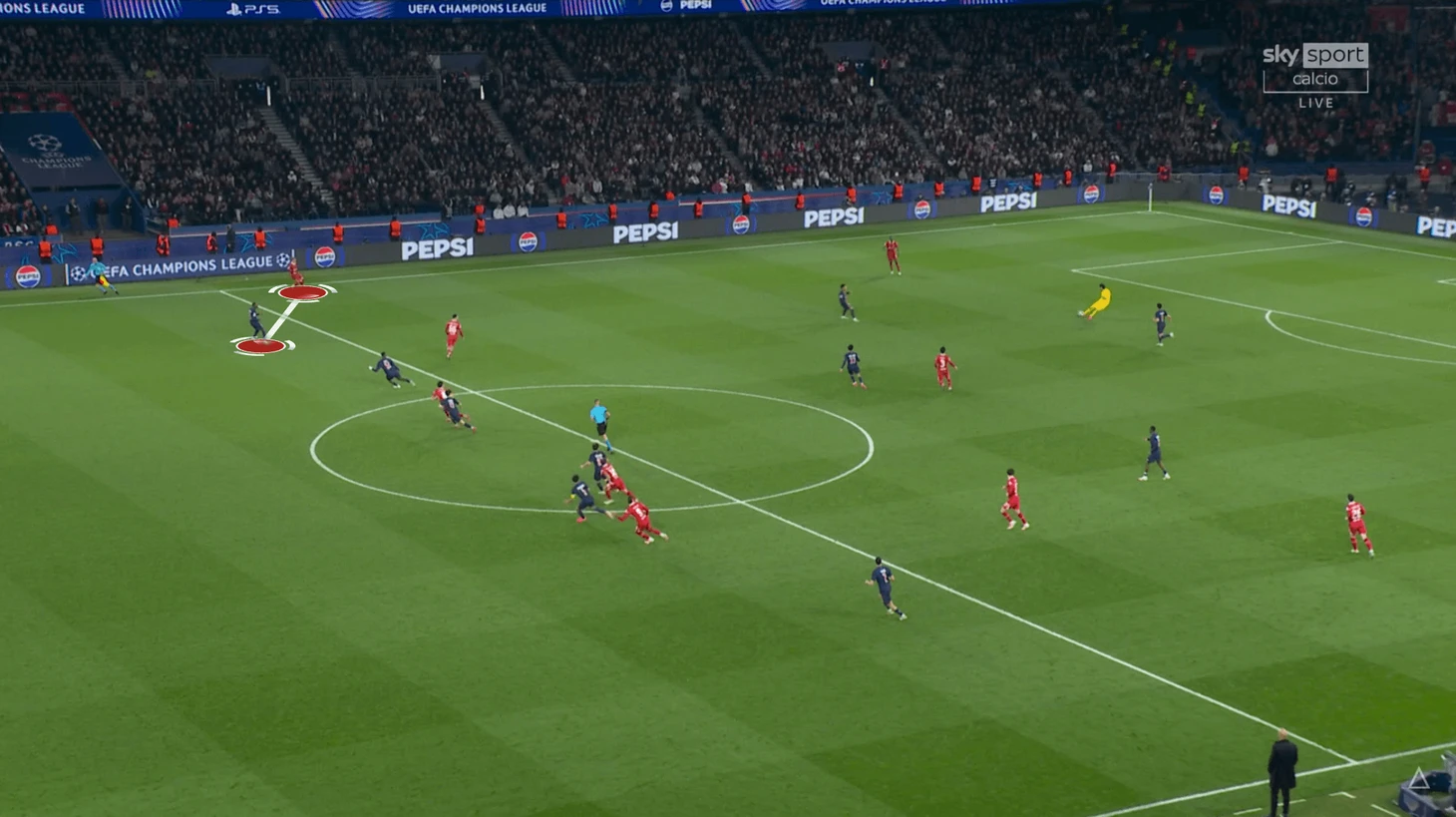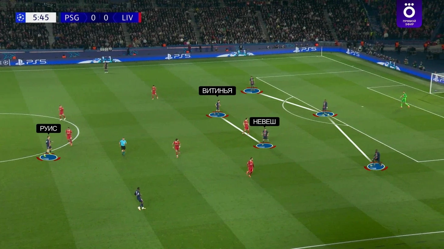 Обычно «ПСЖ» в этой стадии использует 3+1, а рядом с защитниками в опорной мяч продвигает Руис. Это отличный вариант на матчи, где соперник заведомо не готов оказывать давление. Тут же Энрике перевел в более глубокие позиции португальцев, что дало команде еще больше контроля, а «Ливерпуль» лишало возможностей даже эпизодически поддавливать опорную.