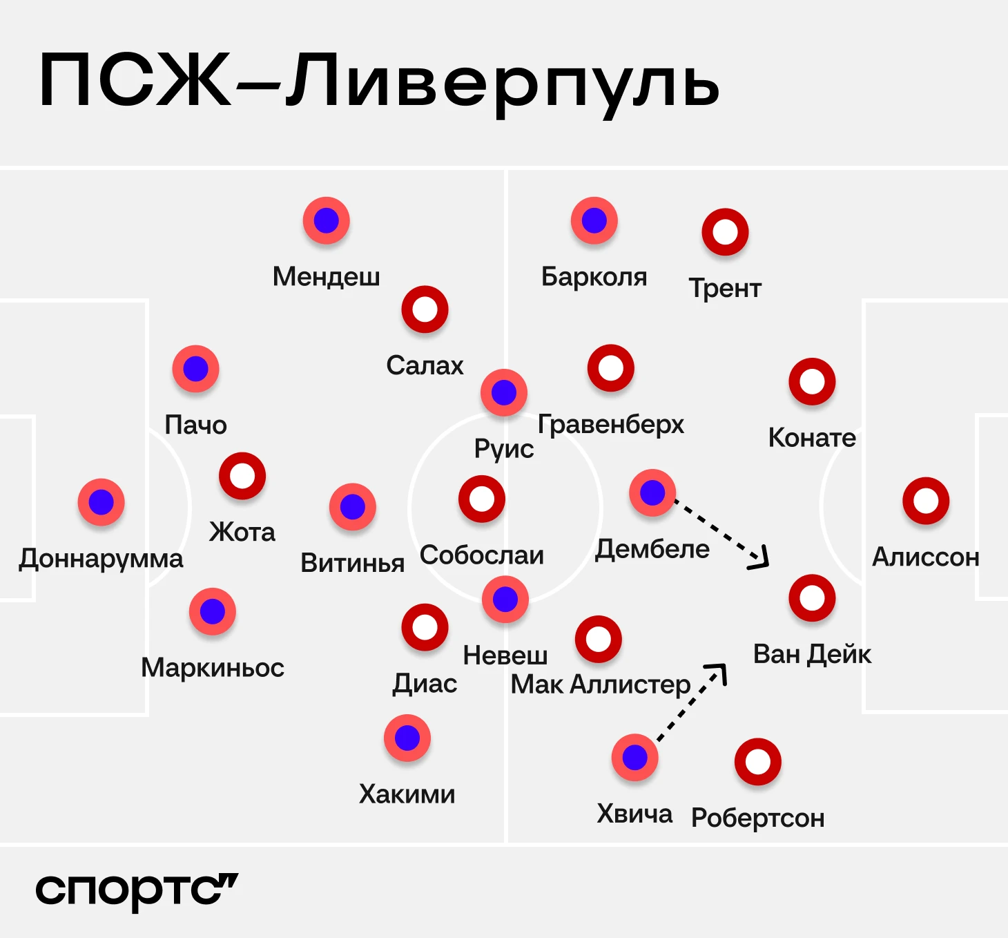 Одна из ключевых причин доминирования «Парижа» – нежелание «Ливерпуля» заигрывать с прессингом. Перед матчем Слот отмечал, что «ПСЖ» не просто давит персонально, но еще и в агрессивной манере старается отнять мяч (не всегда идет в комплекте, но у «Парижа» именно так). «Ливерпуль» доказывал, что может разделаться даже с таким типом прессинга, а в этот раз Слот не рискнул.