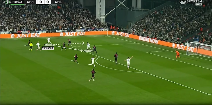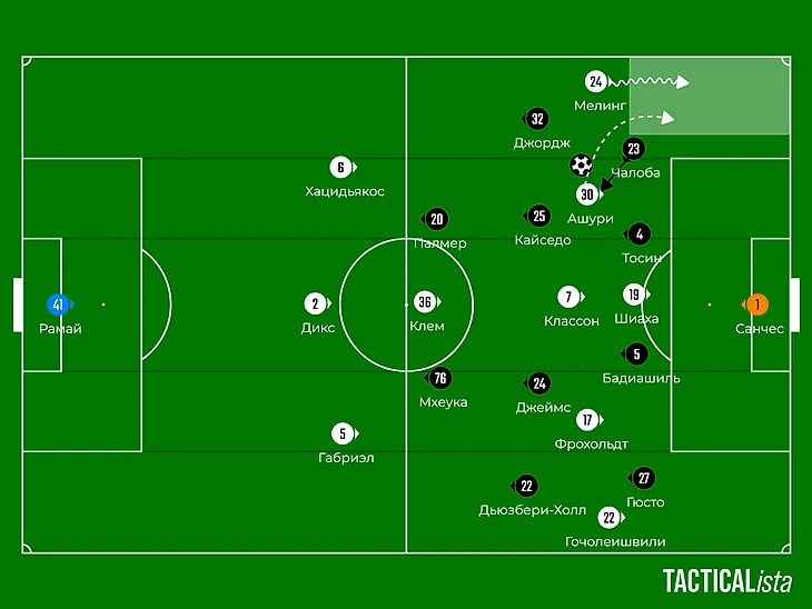 В финальной части эпизода отмечаем Джорджа, который удачно открылся под пас от Нкунку, и нашел набегающего Энцо Фернандеса.