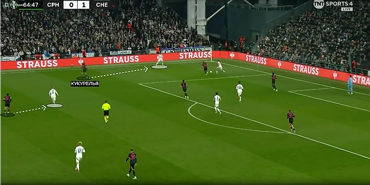 В первом голе «Челси» отдаем должное Нкунку – француз удачно поборолся за мяч с помощью игры корпусом. Второе, что бросалось в глаза – это то, как «Копенгаген» просел в опорной зоне.