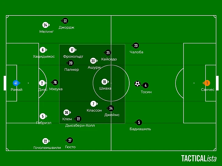 Даже по именам понятно, что замены делались в большей степени в атаку – Энцо и Колвилл обладают хорошей длинной передачей, способной создать момент из глубины, а Нкунку может куда удачнее цепляться за мячи. Плюс, уровень передач от Колвилла и Энцо мог помочь команду в игре на переходных фазах.