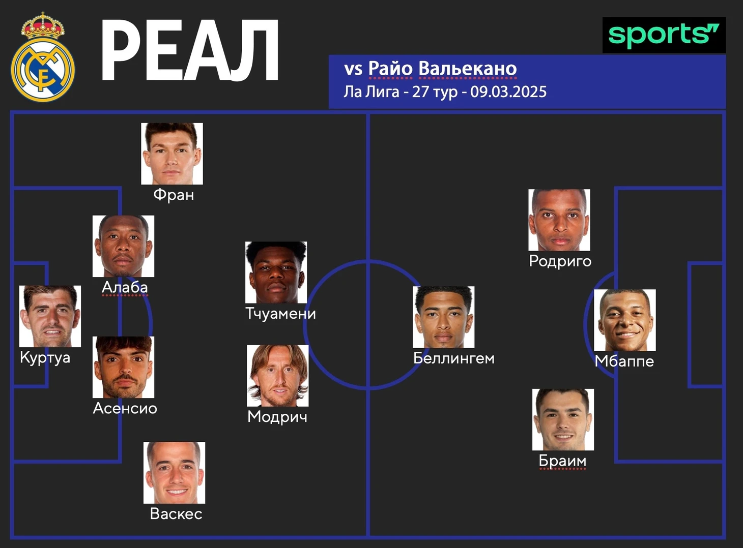 - Останется ли Винисиус на скамейке запасных? Бразилец сыграл уже много игр подряд в основе и, вероятно, ему понадобится передышка. Тогда Родриго сыграет слева, а Браим займет место на левом фланге.