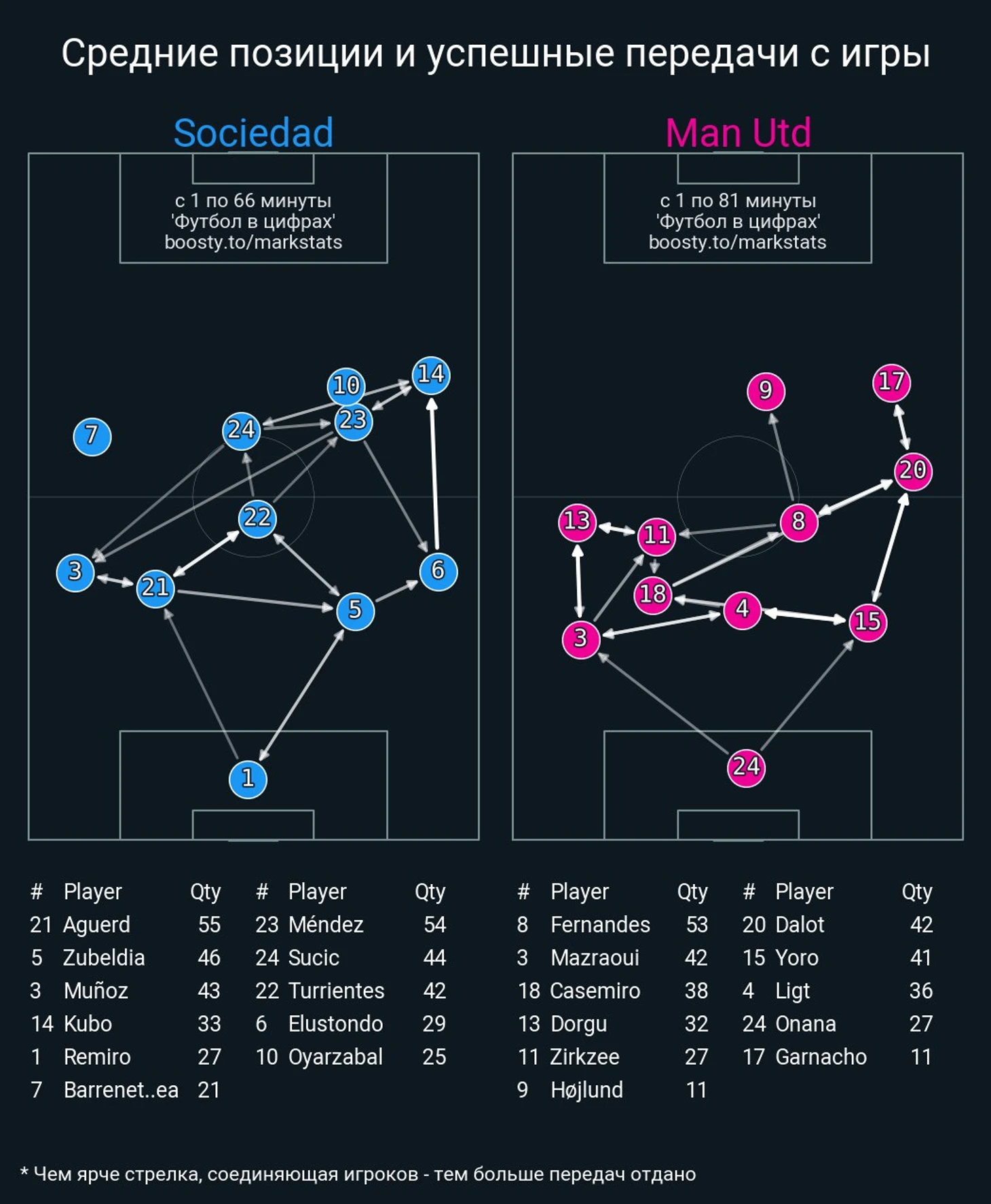 Изначально ход матча был скорее в пользу «МЮ», особенно в первом тайме – могли выйти вперед и забить пару мячей в первые 30 минут. Обсуждаемый момент с пасом Далота не стоит рассматривать через призму влияния на результат – шансов было достаточно и без него: три удара Гарначо из одинаковой позиции, два катбэка под удар в зону 11 метров от того же Далота. Скорее это очередное подтверждение ограниченного функционала Диогу в финальной трети.
