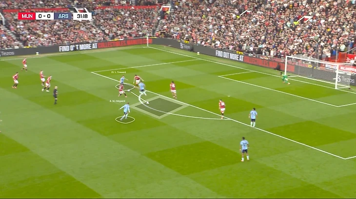 В этом эпизоде Мартинелли мог убрать на замахе уже стелящегося в подкате Мазрауи и сделать передачу в опорную, где набегали Льюис-Скелли и Эдегор, не поместившийся в кадр.