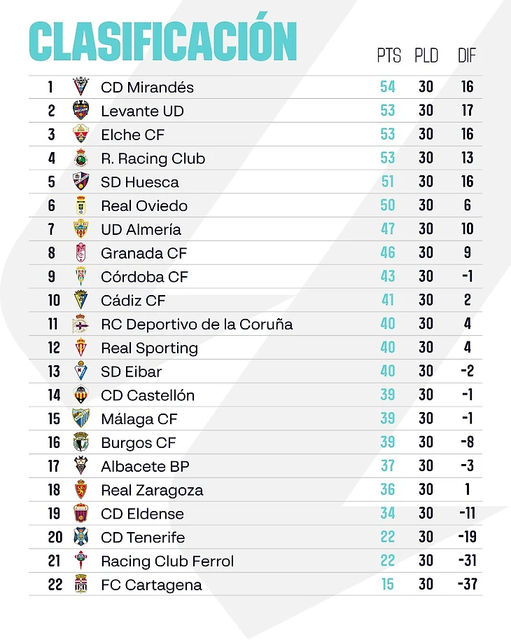 «Леванте» впервые с осени забрался так высоко: до этого команда даже лидировала несколько туров, но позже повалилась и нередко теряла очки. Теперь все проблемы преодолены, пора возвращаться в Ла Лигу.