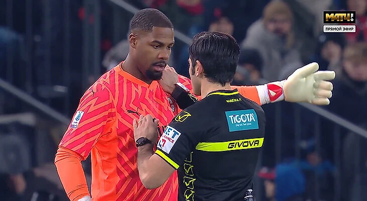 Меньян еще в январе 2024-го отказывался продолжать игру с «Удинезе» из-за расистских оскорблений с трибун – специальный жест ввели только через полгода. На 33-й минуте, когда «Милан» собирался разыгрывать от ворот, вратарь вдруг показал, что не будет продолжать игру. Он пошелк скамейкам, на ходу говорил что-то партнерам и соперникам.