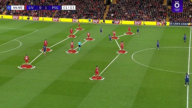 План «Ливерпуля» кардинально отличался от первого матча. В Париже команда сначала умеренно шла в давление, а потом вообще села в автобус. На «Энфилде» прессинговали даже выше, чем обычно в этом сезоне.