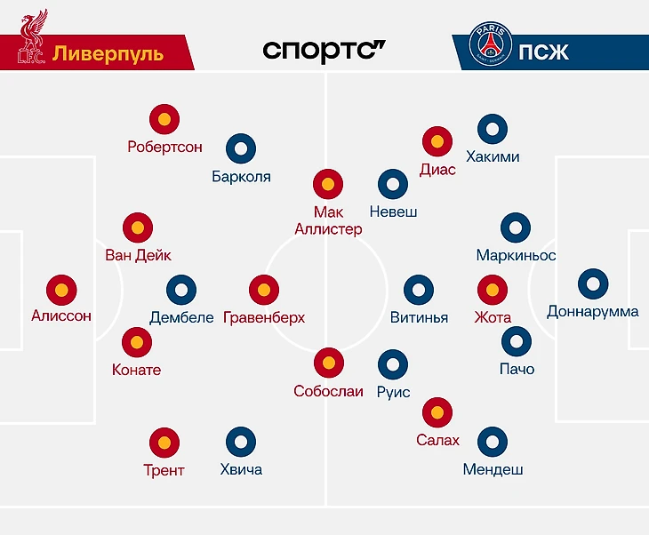 Арне Слот тоже выставил тот же состав. На выходных он устраивал ротацию в АПЛ с «Саутгемптоном», но из резервистов, получивших шанс (Костас Цимикас, Кертис Джонс, Дарвин Нуньес), никто не попал в основу. К игре успел восстановиться основной по сезону Коди Гакпо, но его формы хватило только для включения в заявку.