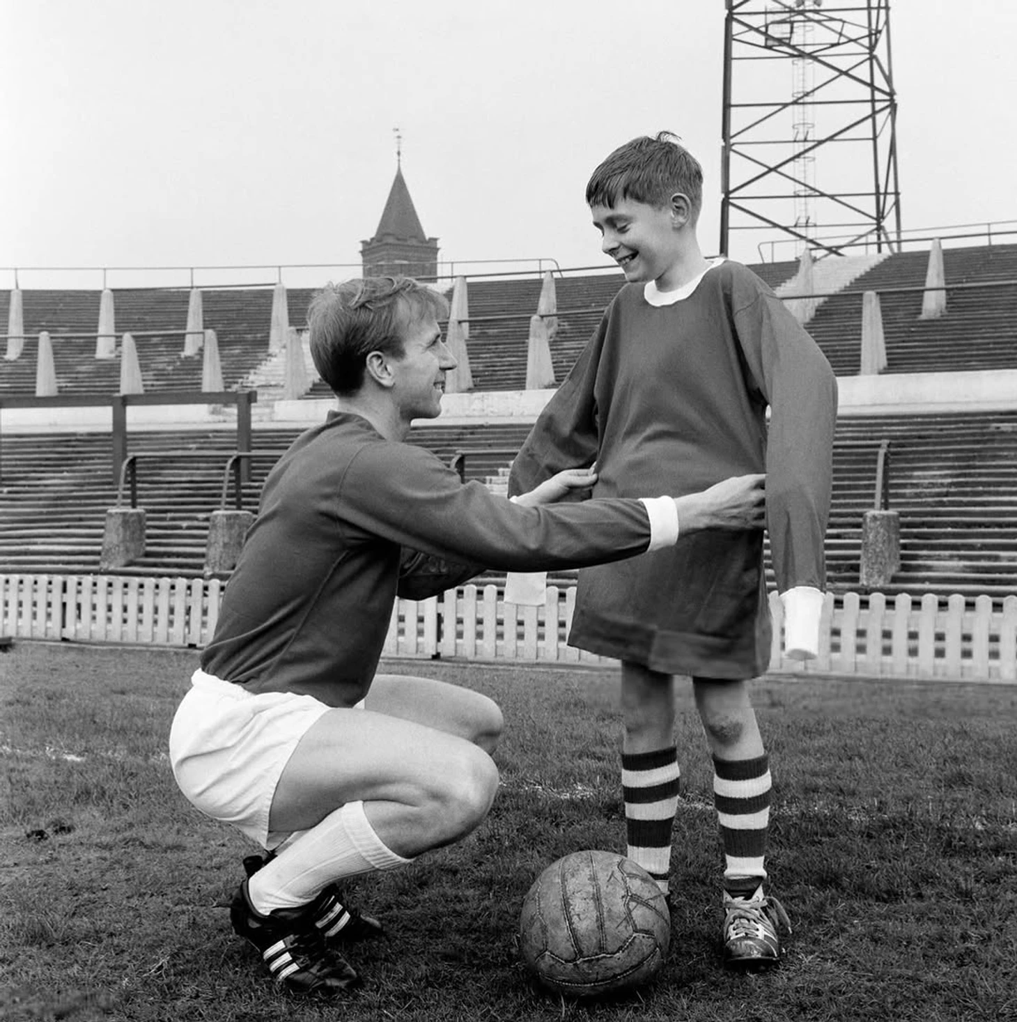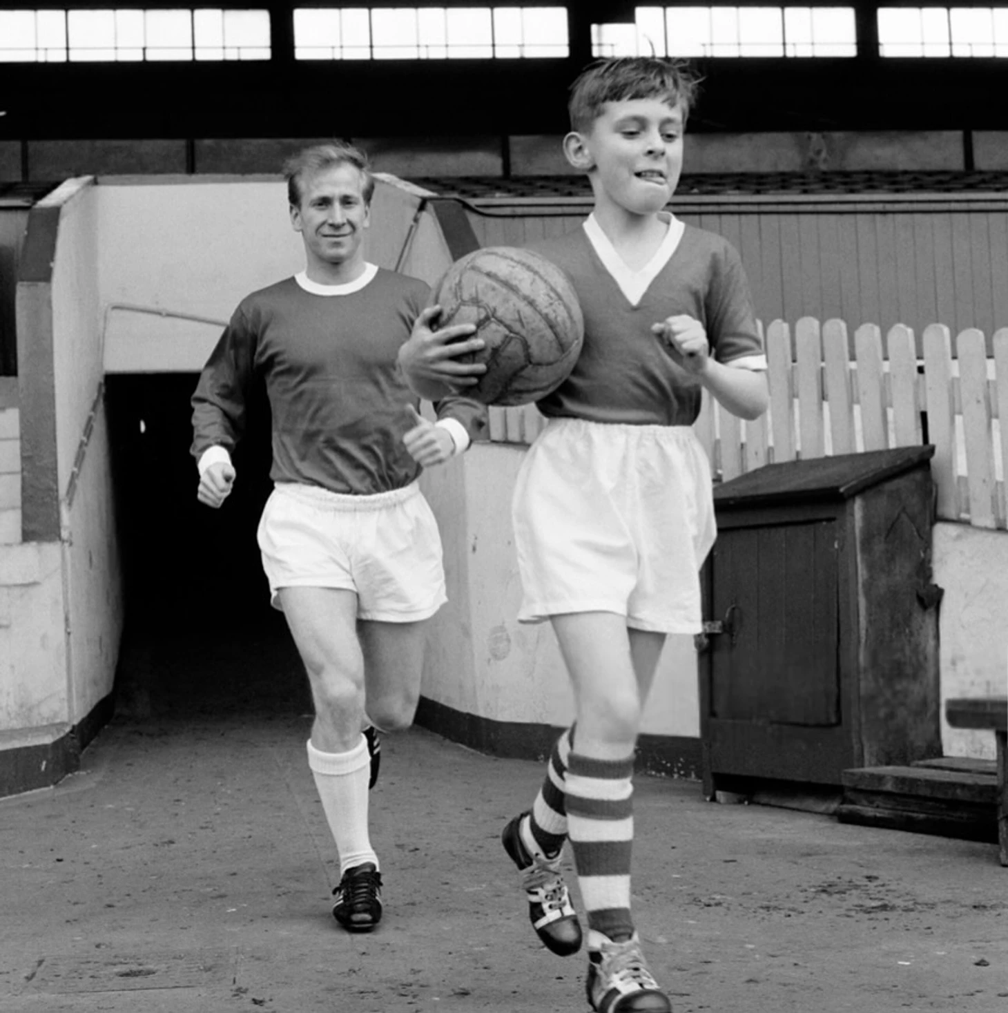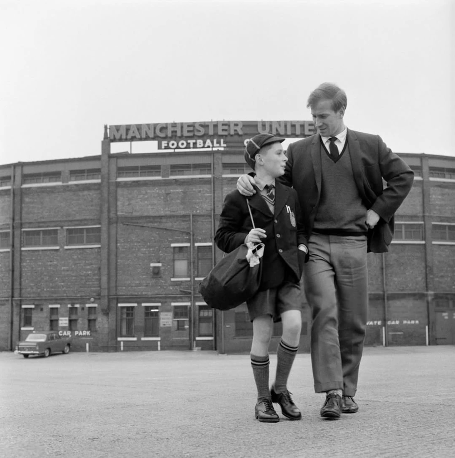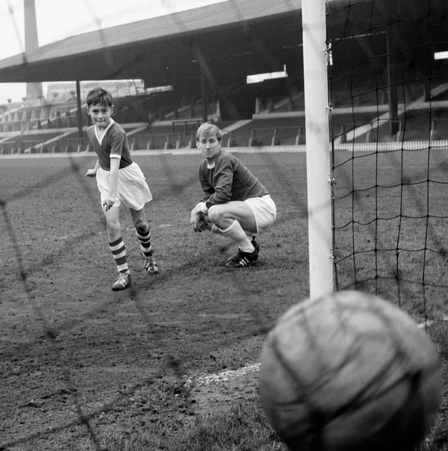 Апрель 1961 года, «Олд Траффорд». На фотографии запечатлен легендарный сэр Бобби Чарльтон, излучающий тепло и дружелюбие. Рядом с ним стоит юный мальчик, 11-летний Чарльз Адамсон из города Галифакс. Этот трогательный момент был запечатлен в специальном выпуске FA Book for Boys, популярного издания для юных футбольных фанатов.