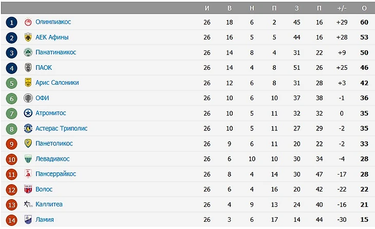 В прошлые сезоны схема плей-офф была несколько другая: турнир просто делился на ТОП 6 и остальные 8, которые, соответственно, разыгрывали места в еврокубках и места, вылетающие из высшей лиги. На следующий сезон от Греции будет 2 команды в ЛЧ (в этом году была только одна – ПАОК), 2 в Лиге Европы и 1 в Лиге Конференций.