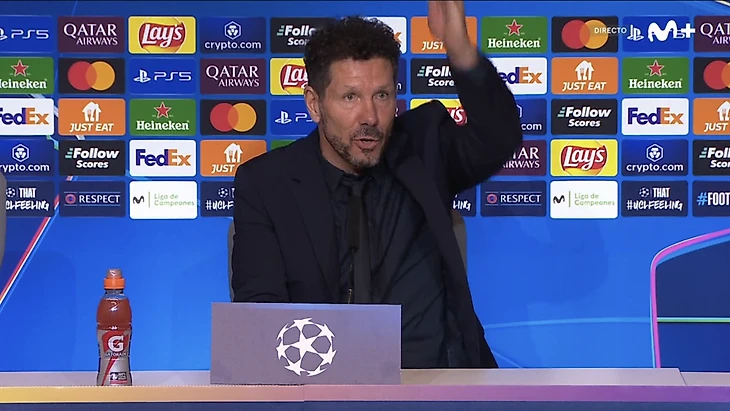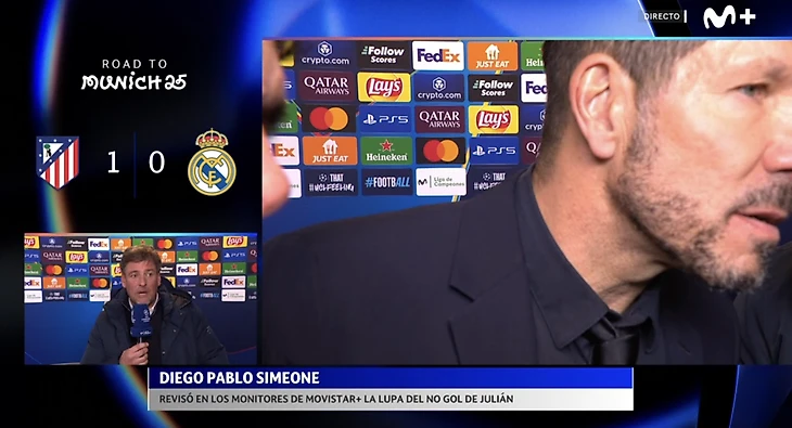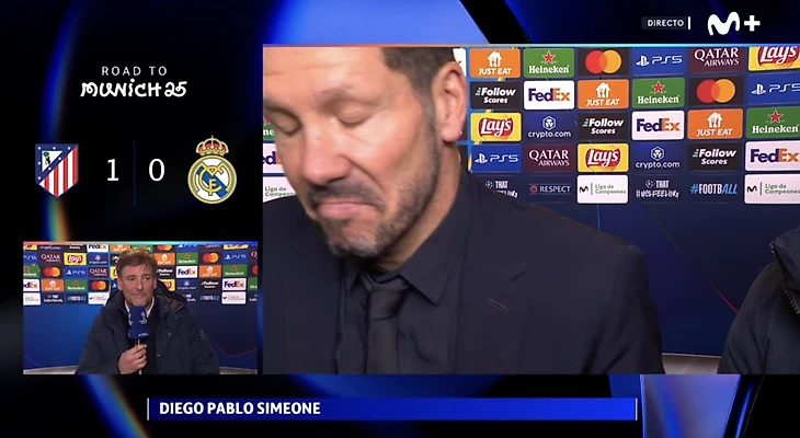 Диего Симеоне впервые увидел момент сразу после флэш-интервью. Все происходило прямо перед камерой Movistar, испанского вещателя Лиги чемпионов.