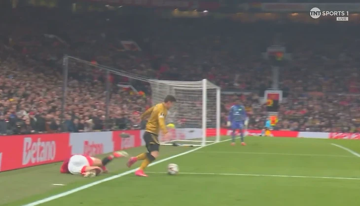 Мог бы быть очень опасный момент, если бы не отчаянный подкат Каземиро. Бразилец четко прочитал эпизод и постелился под прострел, уведя мяч на угловой. После хавбек «МЮ» встал и очень грозно посмотрел в сторону Далота.