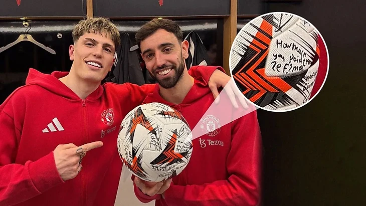 Звезда «Манчестер Юнайтед» оставил необычное сообщение на мяче Бруну Фернандеша после того, как он сделал хет-трик в Лиге Европы в четверг вечером.