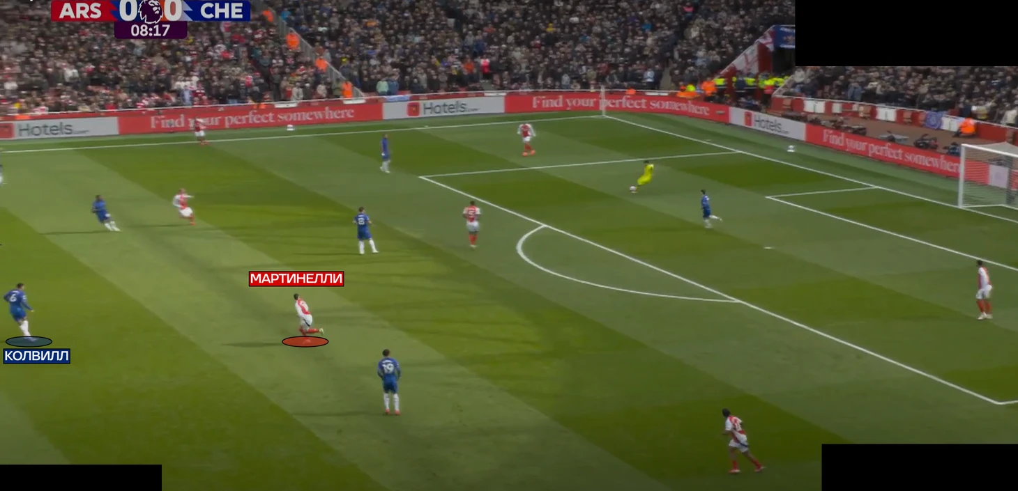 Мартинелли же располагался в средней линии, плюс, бразилец садился пятым защитников при глубокой обороне, что нивелировало атакующую пятерку «синих».
