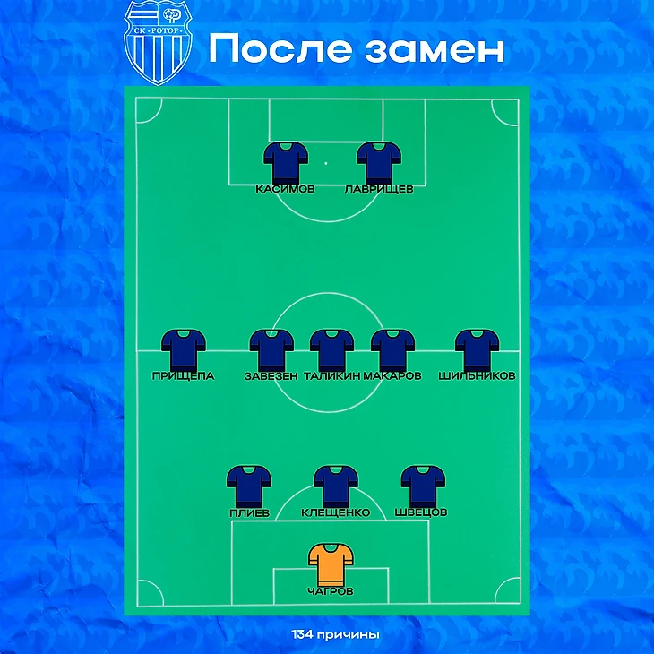 К 69 минуте Денис Константинович сделал все 5 замен, и состав приобрел следующий вид: