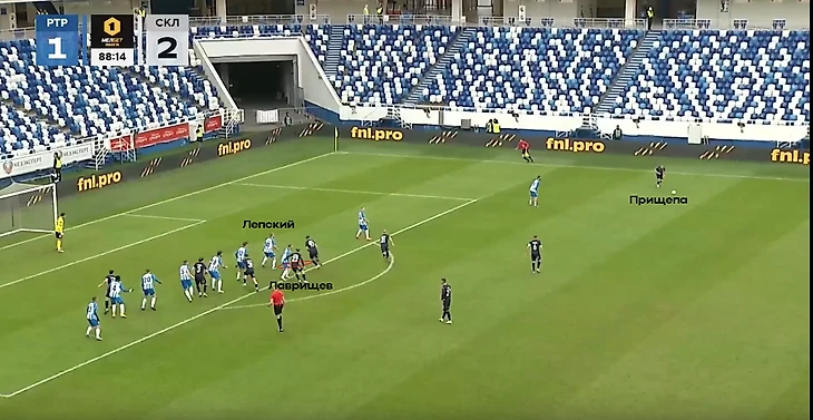 А уже в концовке встречи на 89-ой минуте, после стандартного положения, сработала все та же связка Прищепа-Лаврищев.