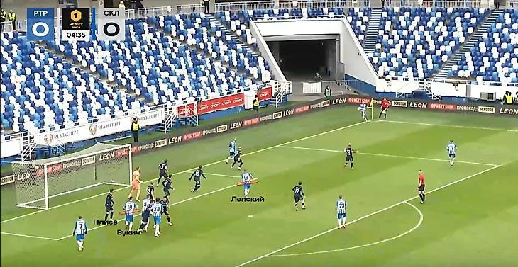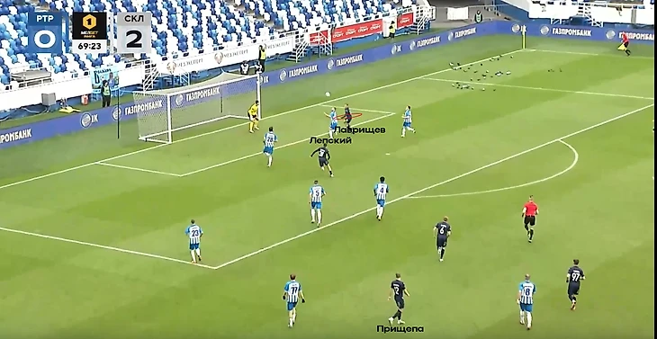 Сначала после заброса с фланга, на 70-ой минуте Лаврищев опередил Лепского.