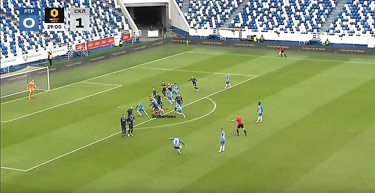 На 30-ой минуте «Ротор» уже горел 0-2, после удара со штрафного в исполнии Кантарии, Забелин был быстрее всех на добивании.