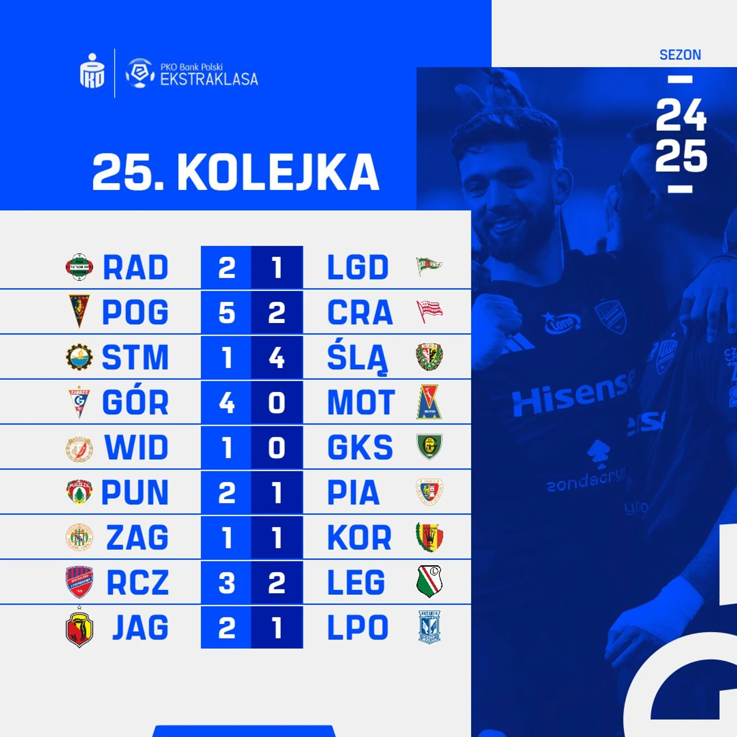 25-ый тур Экстракласы принес смену лидера чемпионата – «Лех» впервые с шестого тура покинул первую строчку. «Легия» же, кажется, прощается с мечтами о медалях, а вот «Шленск» по-прежнему не сдается в борьбе за выживание.
