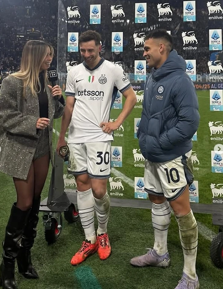«Интер» победил 2:0 на выезде, а игроки команды пообщались с репортершей после игры.