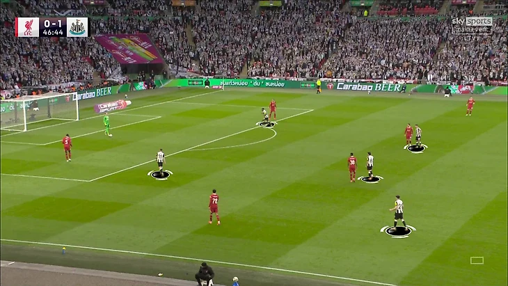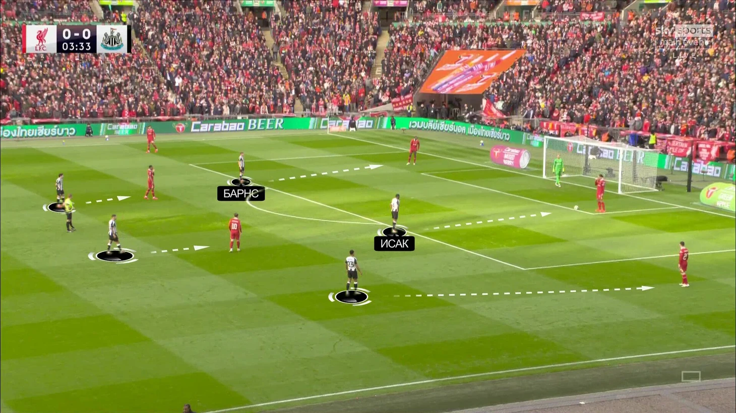 Момент, о котором говорит Слот. «Ньюкасл» начинает прессинг в привычной конфигурации: