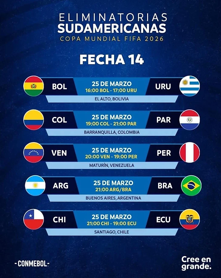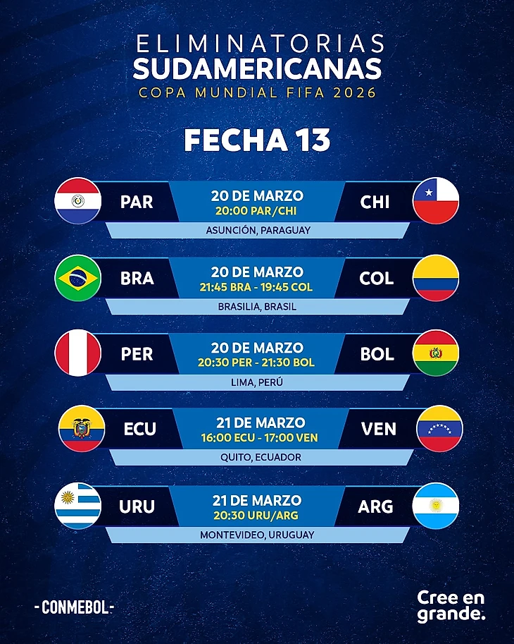 Матч против сборной Боливии состоится в Лиме 20 марта в 20:30 по перуанскому времени (21 марта в 4:30 утра по московскому времени). Против сборной Венесуэлы сыграют в Матурине 25 марта в 19:00 по перуанскому времени (26 марта в 3:00 утра по московскому времени).
