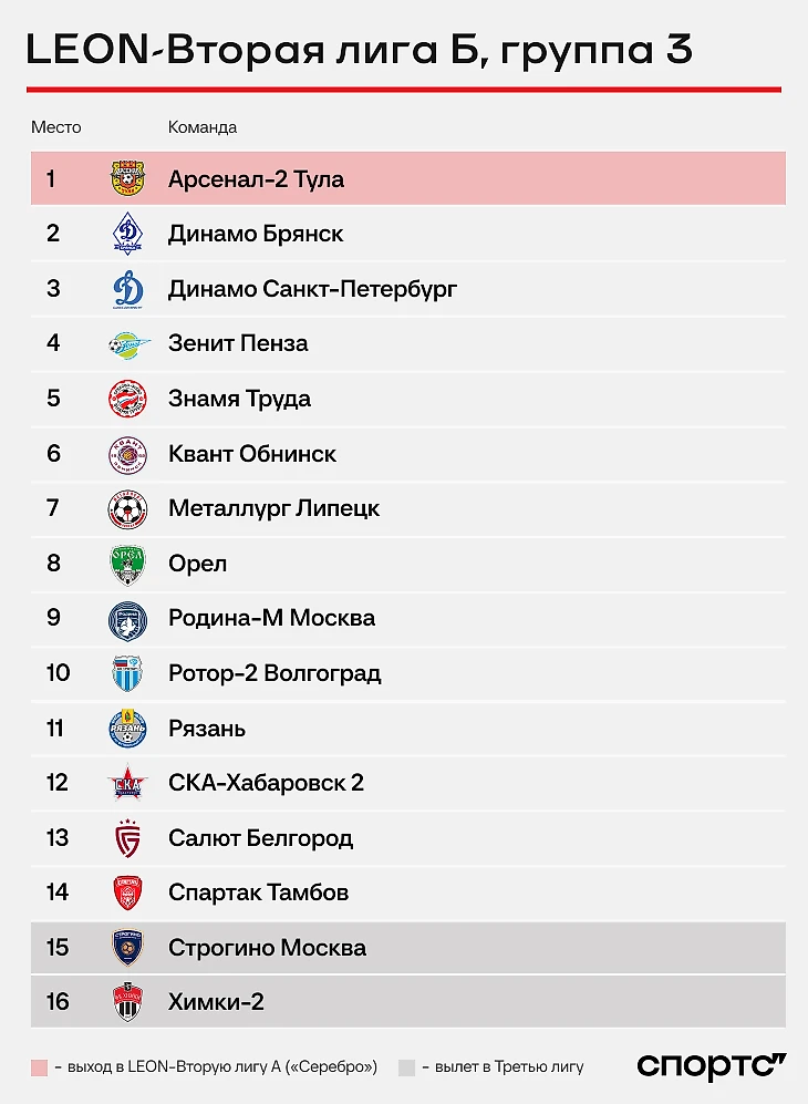 ● Еще потеряли «Строитель» из Каменска-Шахтинского: клуб сменил название, переехал в Томск и теперь существует как «КДВ». А вот махачкалинское «Динамо-2», несмотря на 17-е место, осталось.