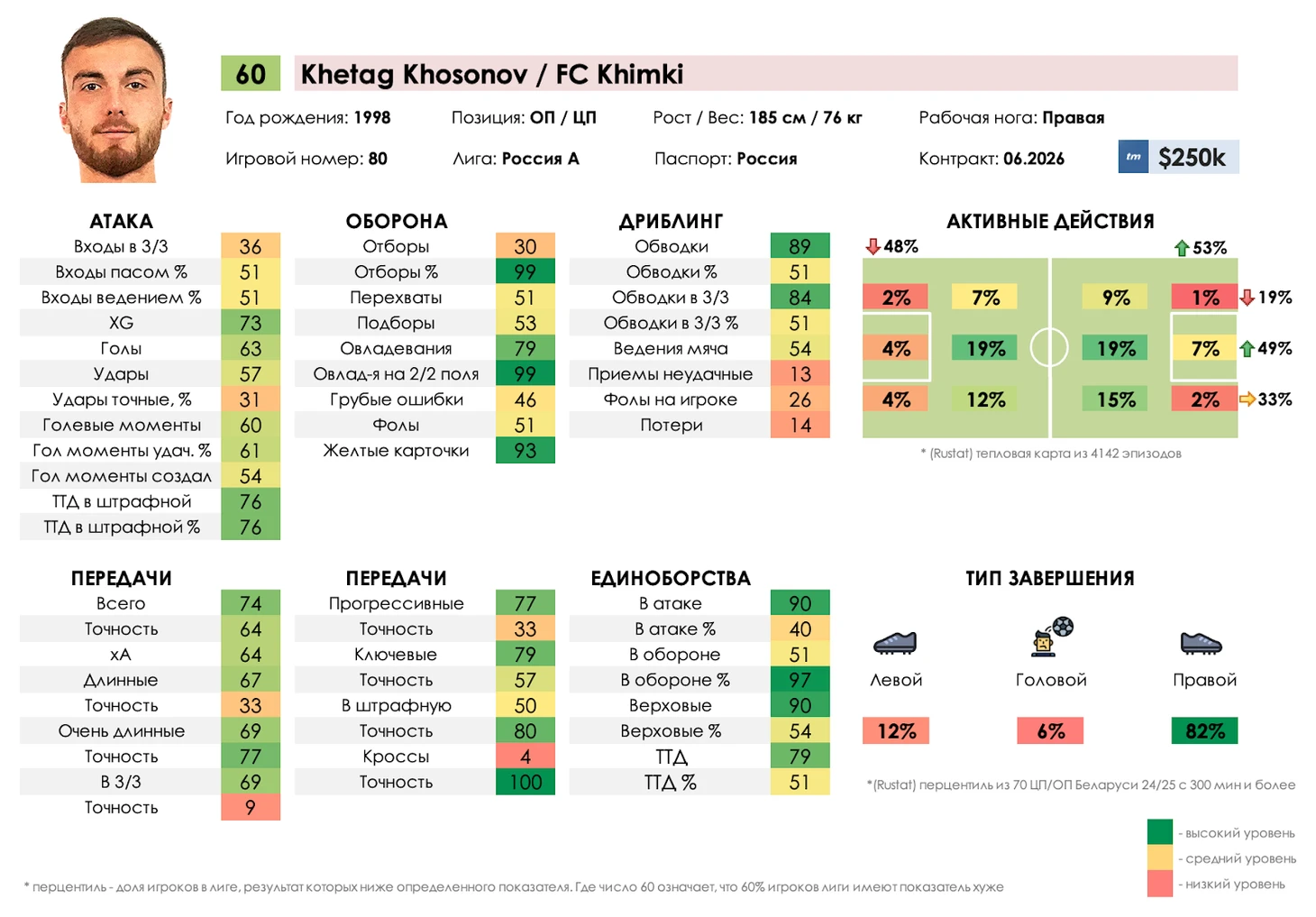 У каждого скаута есть свои инструменты для поиска. Мы много анализируем статистическую составляющую футболиста, создаем свои формулы и перцентили - это один из основных инструментов в поиске игрока по требуемым качествам на ту или иную позицию. Если футболист выделяется по ключевым статистическим метрикам, он попадает к нам на радар, и далее мы изучаем его игровой профиль. Важный момент: подтверждение хорошим статистическим параметрам кандидата мы хотим увидеть при просмотре полных матчей и видеонарезок.