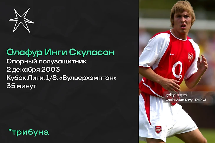 Продолжаем двигаться по Северной Европе, на очереди – Исландия. Олафур Инги Скуласон сыграл единственный матч за «Арсенал» тогда же, когда и Фрэнк Симек – в матче Кубка Лиги сезона 2003/04 против «Вулверхэмптона». Правда, в отличие от американца, исландец довольствовался выходом на замену во втором тайме вместо травмированного Джастина Хойта. Клубную карьеру полузащитника можно назвать весьма неплохой – он немного поиграл в Англии за «Брентфорд», в Швеции за «Хельсингборг», в Дании за «Сендерйюске», а затем провел более ста двадцати матчей за бельгийский клуб «Зюлте-Варегем». Был и неплохой отрезок в Турции – сезон с «Генчлербирлиги» и два сезона с «Карабюкспором». Доигрывал футболист, не попавший в заявку сборной на исторический Евро-2016 и просидевший в запасе все матчи Чемпионата Мира 2018, на родине. Завершил карьеру в 2020 году. Сейчас Скуласон тренирует молодежную сборную Исландии. Ему сорок один год.