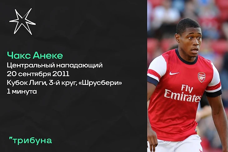 Теперь переходим к футболистам, чье пребывание на поле в составе главной команды «Арсенала» было ограничено компенсированным временем к матчу. Чакс Анеке, английский нападающий с нигерийским происхождением, заменил в концовке победного матча с «Шрусбери» Алекса Окслейд-Чемберлена. Больше, собственно, за старшую команду он не играл. Он поездил по арендам в низшие дивизионы, а в 2014 году покинул Лондон, перейдя в бельгийский «Зюлте-Варегем» на правах свободного агента. В Бельгии Чакс забивал не так много, поэтому уже в 2016 году вернулся в Англию – в «МК Донс». Последнее время Анеке играет за «Чарльтон Атлетик», но успешным с точки зрения результативности можно назвать лишь сезон-2020/21, когда он настрелял пятнадцать голов. Сейчас форварду тридцать один год.