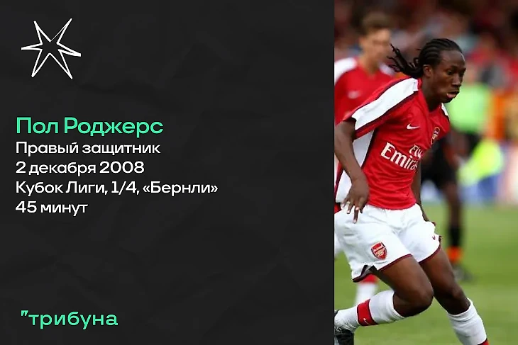Пол Роджерс, который вряд ли знаком широкой футбольной общественности, провел первый тайм матча Кубка Лиги против «Бернли» за основной состав «Арсенала». Тот матч был проигран, а сам защитник, разумеется, больше за главную команду лондонцев не играл. Дальнейшая карьера Пола, к сожалению, абсолютно не задалась – он провел еще лишь пять сезонов на профессиональном уровне – один в Лиге 1 (третий по силе дивизион), два в Лиге 2 (четвертый) и два в Национальной Конференции (пятый). При этом, он защищал цвета «Нортгемптона», «Ньюпорта» и «Бромли». Затем Роджерс еще три года отыграл в полулюбительских лигах и завершил карьеру игрока в 2018 году. Сейчас экс-футболисту тридцать пять лет.