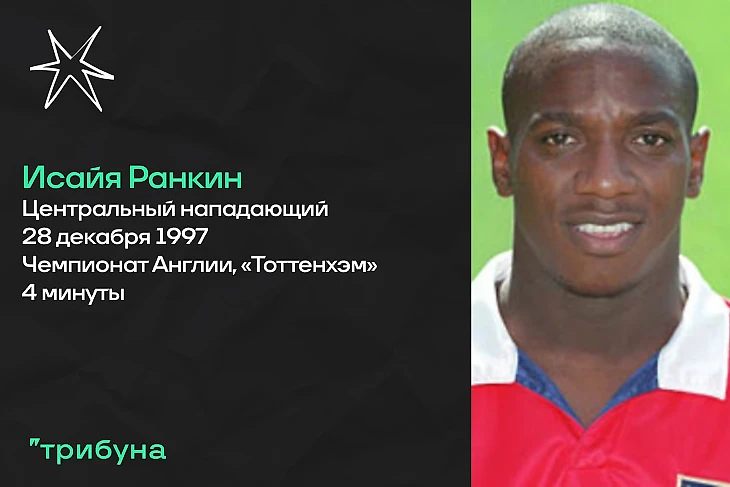 Этот воспитанник «канониров» сыграл за основу только четыре минуты, зато какие – в дерби против соседей из «Тоттенхэма». В той встрече молодой нападающий вышел на поле в конце вместо Николя Анелька, а сам матч завершился вничью. В 1998 году Ранкина купил «Брэдфорд» за 1.50 миллиона Евро. В этом клубе Исайя провел один сезон во втором по силе дивизионе, который тогда еще не назывался Чемпионшипом, а также суммарно десять матчей в Английской Премьер Лиге. Кроме того, были аренды в «Болтон» и «Бирмингем». В дальнейшем, карьера Ранкина планомерно катилась вниз – просто перечислю клубы, за которые он играл: «Барнсли», «Гримсби», «Брентфорд», «Маклсфилд», «Стивенедж», «Кроули» и «Форест Грин». Завершил карьеру англичанин в 2013 году. Сейчас ему сорок шесть лет.