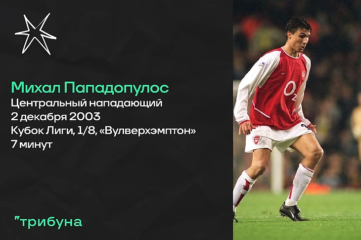 И снова на повестке матч «Арсенала» с «Вулверхэмптоном» в декабре 2003 года. Чех с греческим происхождением Михал Пападопулос, который может быть хорошо известен любителям российского футбола по выступлениям за сочинскую «Жемчужину» и «Ростов», в той встрече в самом конце заменил Алиадьера. К слову, тогда Михал принадлежал чешскому «Банику», а за «канониров» играл на правах аренды. После этого он вернулся в Чехию, затем несколько сезонов провел в запасе «Байера», неплохо проявил себя в составе «Млады» и «Херенвена». Далее были упомянутые выше клубы из России и много лет в Чемпионате Польши, где Пападопулос даже стал Чемпионом в составе «Пяста». Под конец карьеры он вернулся на родину, где провел три года в «Карвине». Завершил карьеру форвард в 2003 году. Сейчас тридцатидевятилетний экс-игрок «Арсенала» является тренером нападающих в родном «Банике».