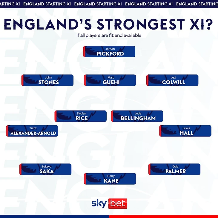 В команду вошли: Джордан Пикфорд, Джон Стоунз, Марк Гехи, Ливай Колуилл, Деклан Райс, Джуд Беллингем, Трент Александер-Арнолд, Льюис Холл, Букайо Сака, Коул Палмер и Харри Кейн.