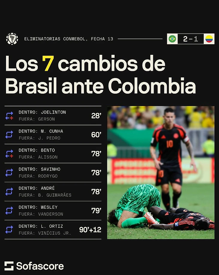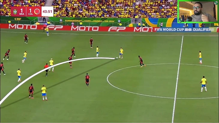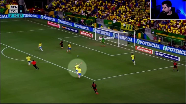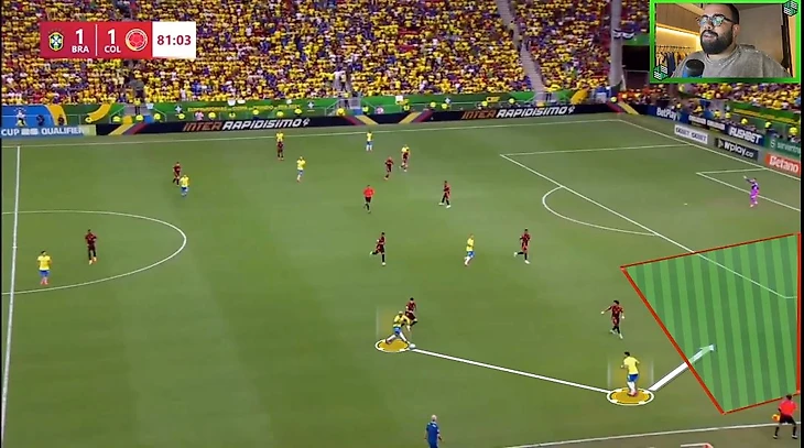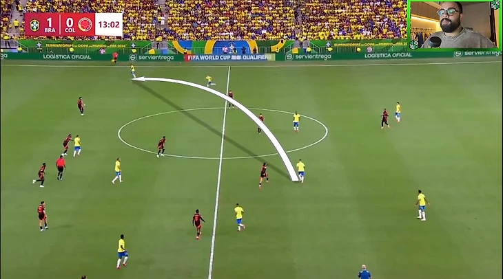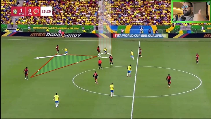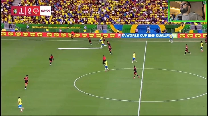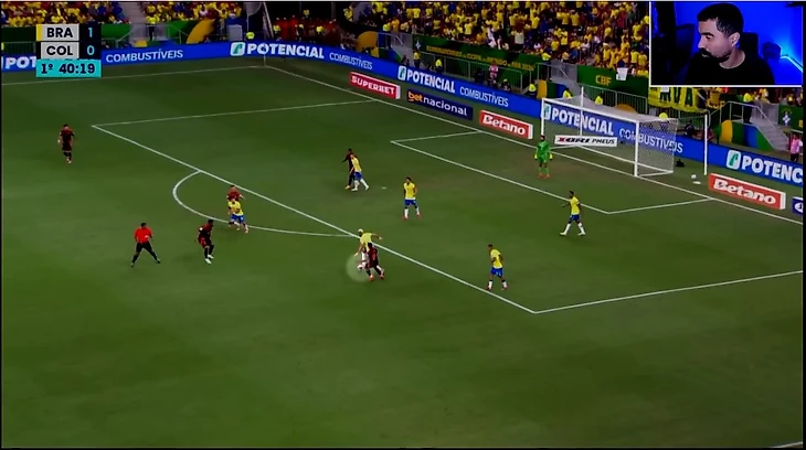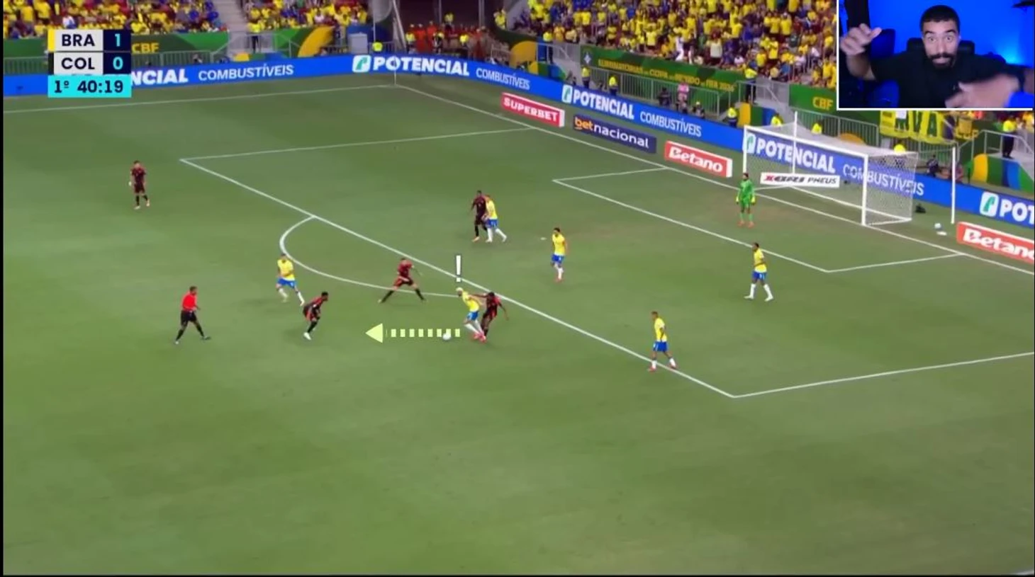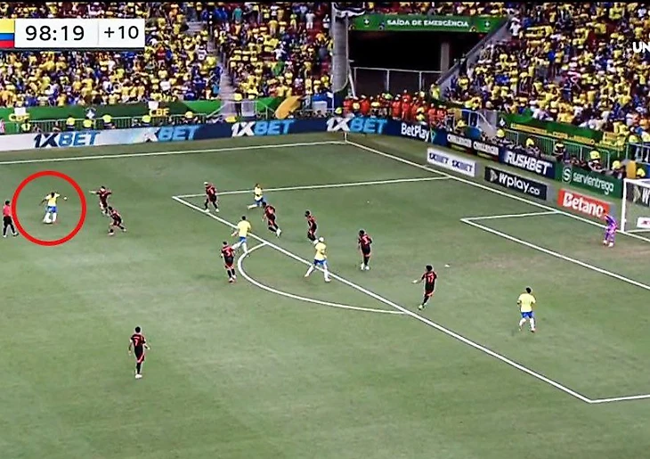 В начале второго тайма Бразилии удалось избежать этого удушья. Во-первых, потому что она нашел интересные пути длинных передач на Вини и Рафинью от защитников и Бруно, а во-вторых, из-за снижения интенсивности давления со стороны колумбийцев. В первые десять минут команде удалось провести две хорошие атаки на скорости. В обоих случаях Камило Варгас выручил после ударов Рафиньи и Вини.