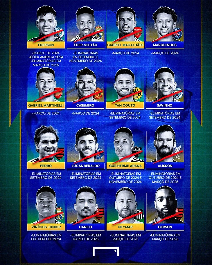 В сборной 4 новичка на замену выбывшим Алиссону, Габриэлу Магальяэсу, Гимараэсу и Жерсону.