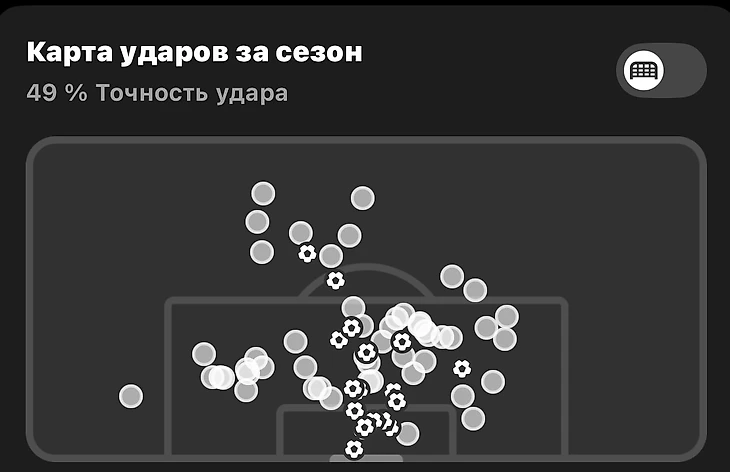 Ниже Вы можете посмотреть откуда были нанесены все 58 ударов и с каких позиций забивались голы.