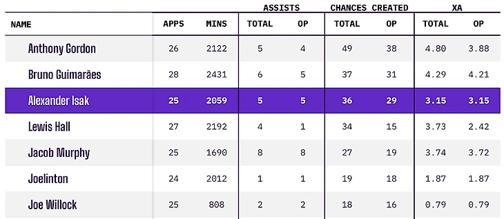 В крайнем гостевом матче против «Ливерпуля» который завершился в пользу «Ньюкасла» Исак проиграл больше всех единоборств — 7.