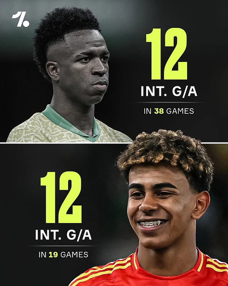 Ямаль уже сравнялся с Винисиусом по результативным действиям за сборную. Провел вдвое меньше игр 🤯
