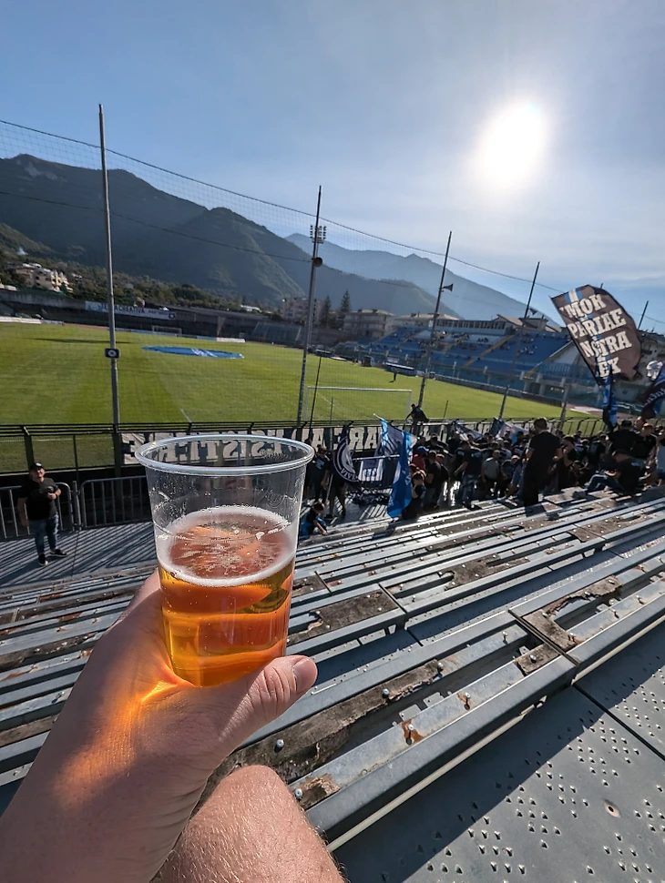 Чтобы не разрывать связь с Португалией, на стадионе продают пиво португальского бренда «Super Bock». За бокальчик 0,5 надо заплатить 2,50 евро.