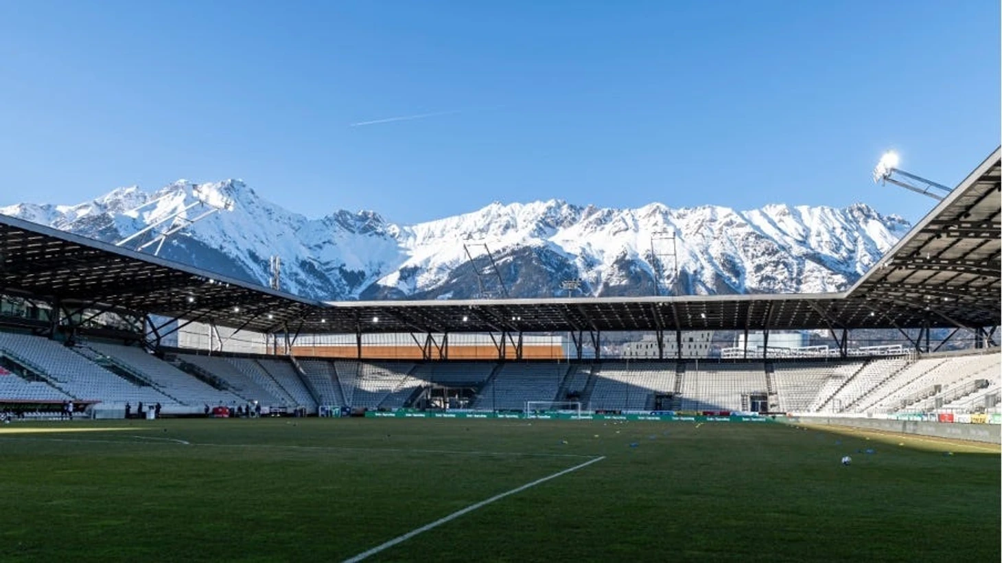 Тот стадион в Инсбруке до наших дней не дожил, но рядом с тем местом в 2000 году построили новый, на котором затем сборная России провела два матча (против Испании и Швеции на групповом этапе) памятного Евро-2008. Виды позади трибун конечно завораживающие.