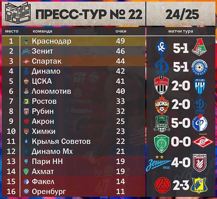 Хозяйские победы и перестановки внизу. Пресс-тур РПЛ №22
