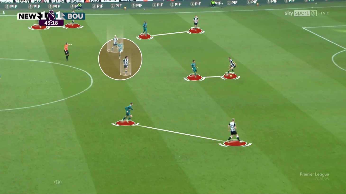 Еще один фактор – качества игроков. При любом составе атаки у «Борнмута» выходит минимум 4 игрока, которые топово способны открываться за спину на скорости (эталонные примеры – Клюйверт и Семеньо). Почти все они универсальны и взаимозаменяемы, что позволяет лучше ориентироваться в хаосе и угрожать из любой зоны.