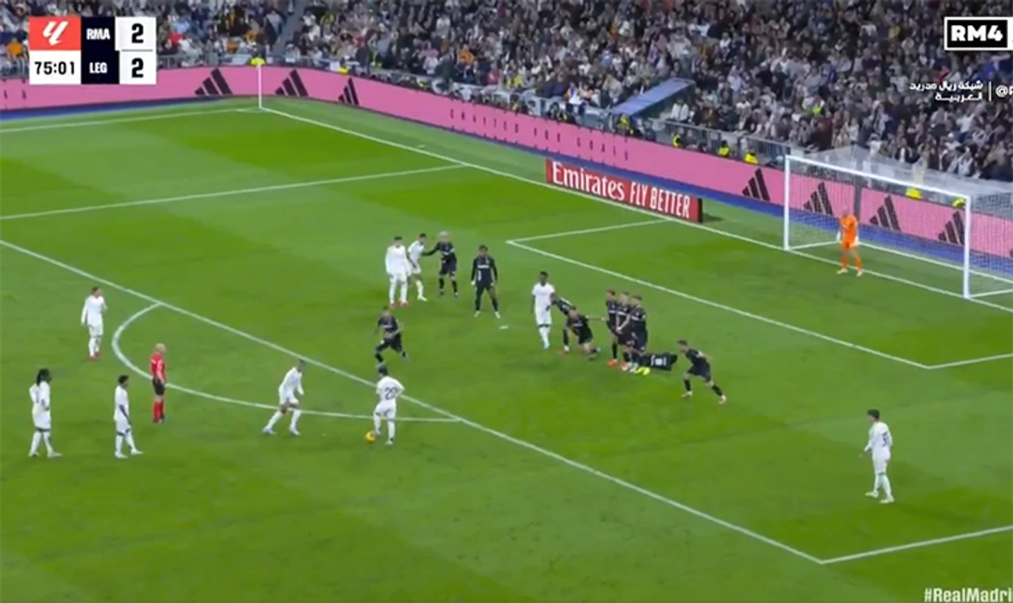 «Реал» полез в атаку, но никак не мог доделать камбэк, а на 76-й минуте вдруг произошло невероятное. Килиан Мбаппе впервые в карьере забил со штрафного: удар метрах в 20 от ворот «Леганеса». Хотя есть нюанс: перед этим Фран Гарсия скатил Килиану под удар. Так что, если подходить строго, это все-таки не гол со штрафного!