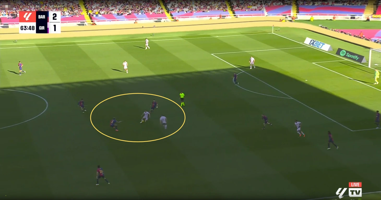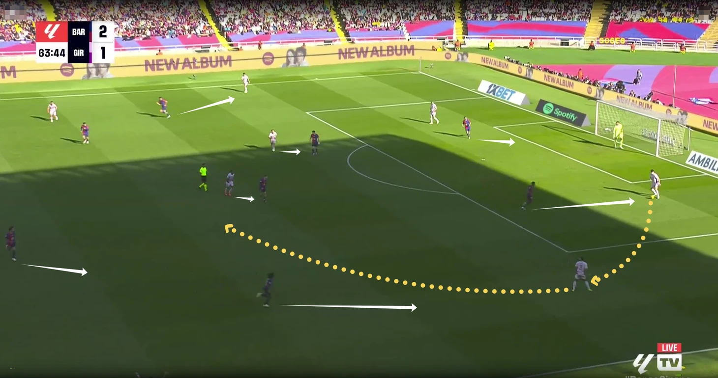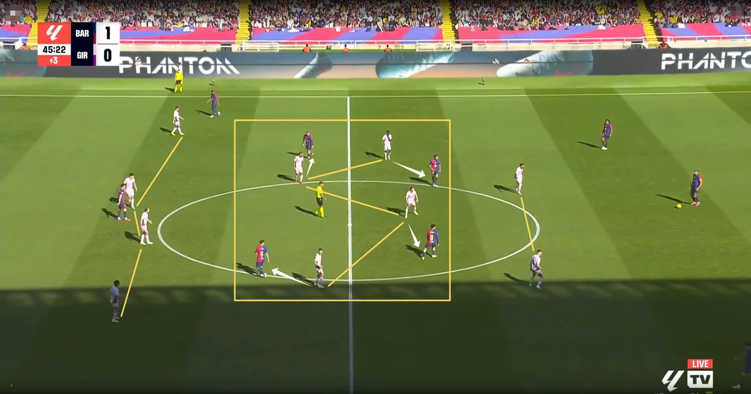 Здесь подобное решение в первую очередь обусловлено уровнем действий игроков без мяча: Ферран лучше Робета в прессинге, поэтому в предыдущем матче именно он начинал давление. В матче против «Жироны» выбор логическим образом был сделан в пользу Гави.